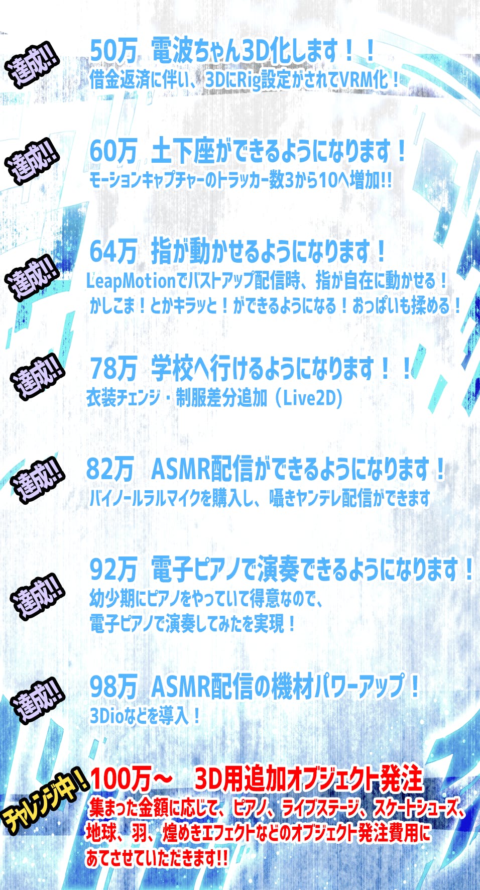 100万より先、超過分は集まった金額に応じて、すべて3Dのオブジェクト発注費用にあてたいとおもいます!!!!