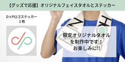・オリジナルフェイスタオル、D×Pロゴステッカーをお渡し