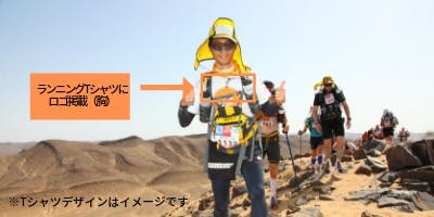 ・今井がゴビ砂漠マラソンで着用するランニングTシャツの胸に御社ロゴを掲載