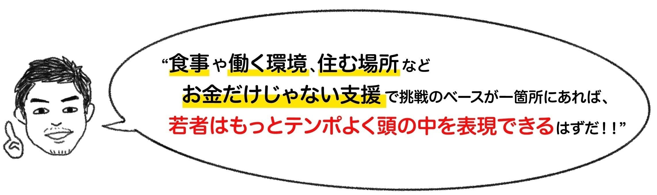 そしてただ場所を創るだけじゃなく、そこで挑戦に集中できるような様々なサポートを提供していきたいと思います。