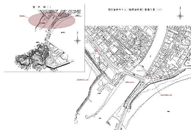 今回のクラウドファンディングの対象となる観光案内サインは、次の3箇所だキュン♡