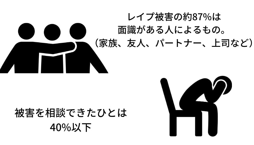 性暴力被害の80%以上は、知人、友人、上司など、面識がある人によるもの。