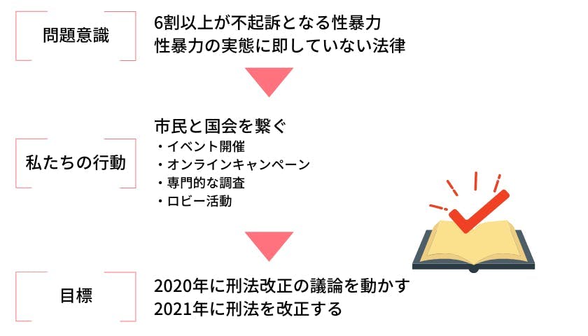 「市民の声を国会に届けて刑法改正を実現する」ために必要な活動費を調達することを目的に、クラウドファンディングを始めました。小さな団体である私たちが、継続した活動をしていくために、皆様のご支援をお願いします。