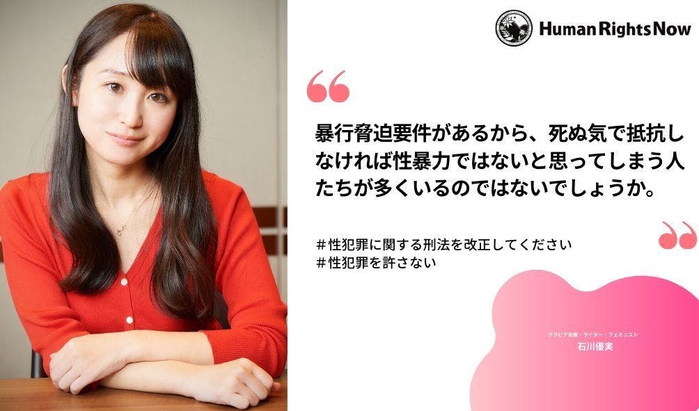 「ヒューマンライツ・ナウは、現に監護していなくても、地位関係性を利用した性暴力についても処罰できるように、新たに法律を加えることを求めます。」