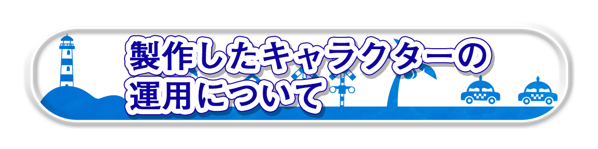 キャラクターは「タクシーをイメージしたマスコットキャラクター」と「人型のちびキャラクター」をイラスト製作会社の株式会社megumi88worksさんへ依頼予定です。