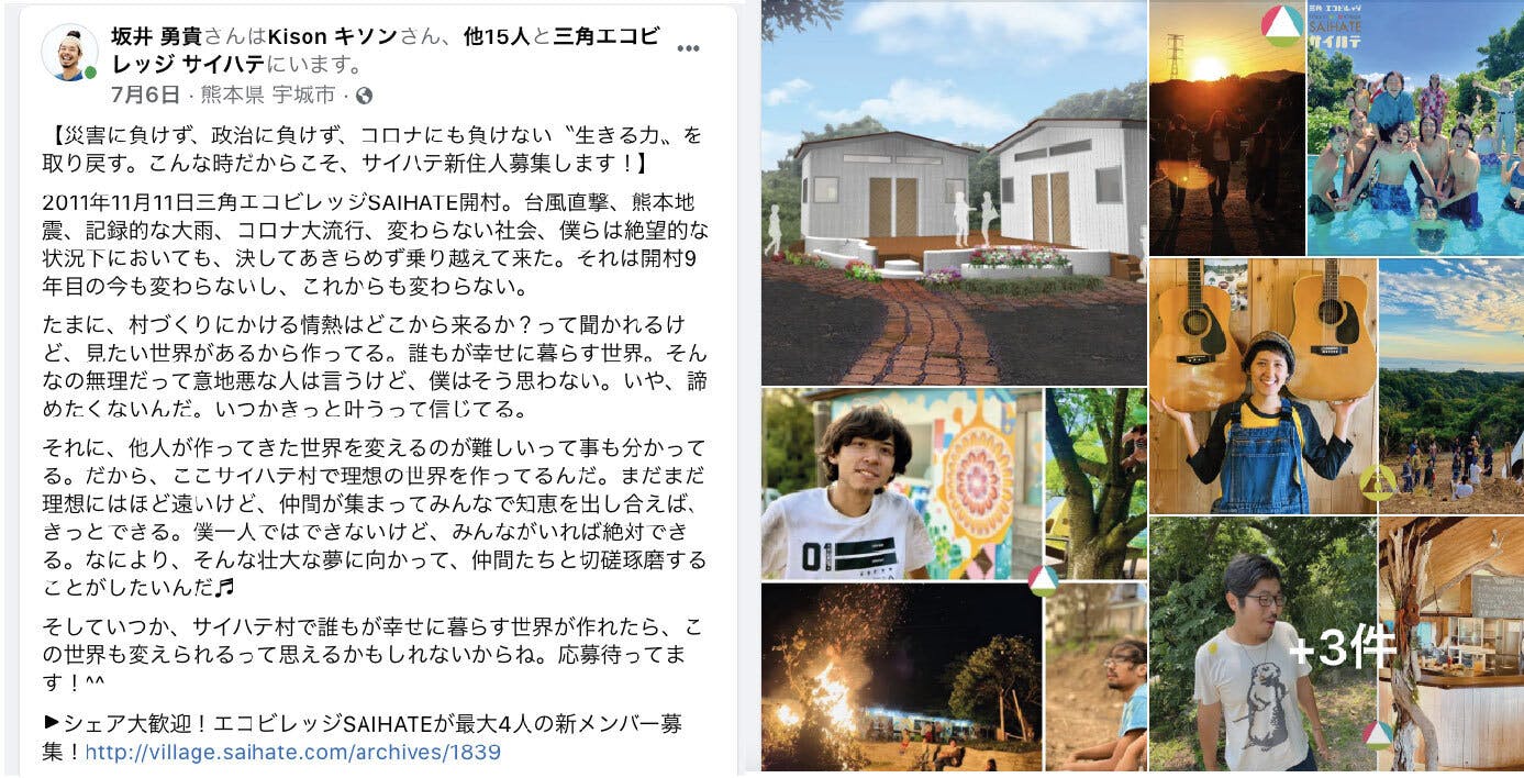 熊本県は宇土半島にあるお山の上、約一万坪にある8世帯30人が住まう持続可能なライフスタイルを模索、実践するコミュニティです。