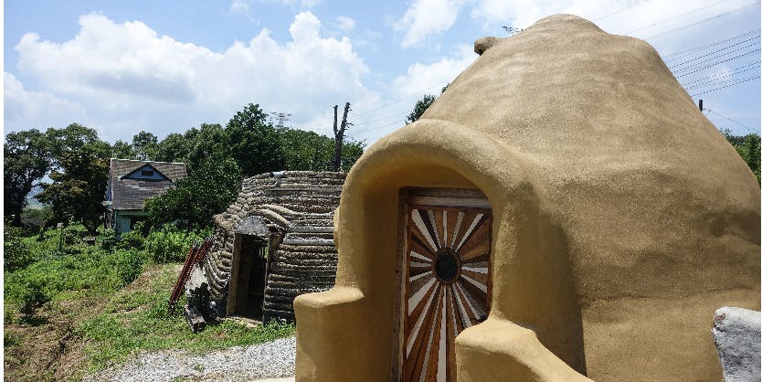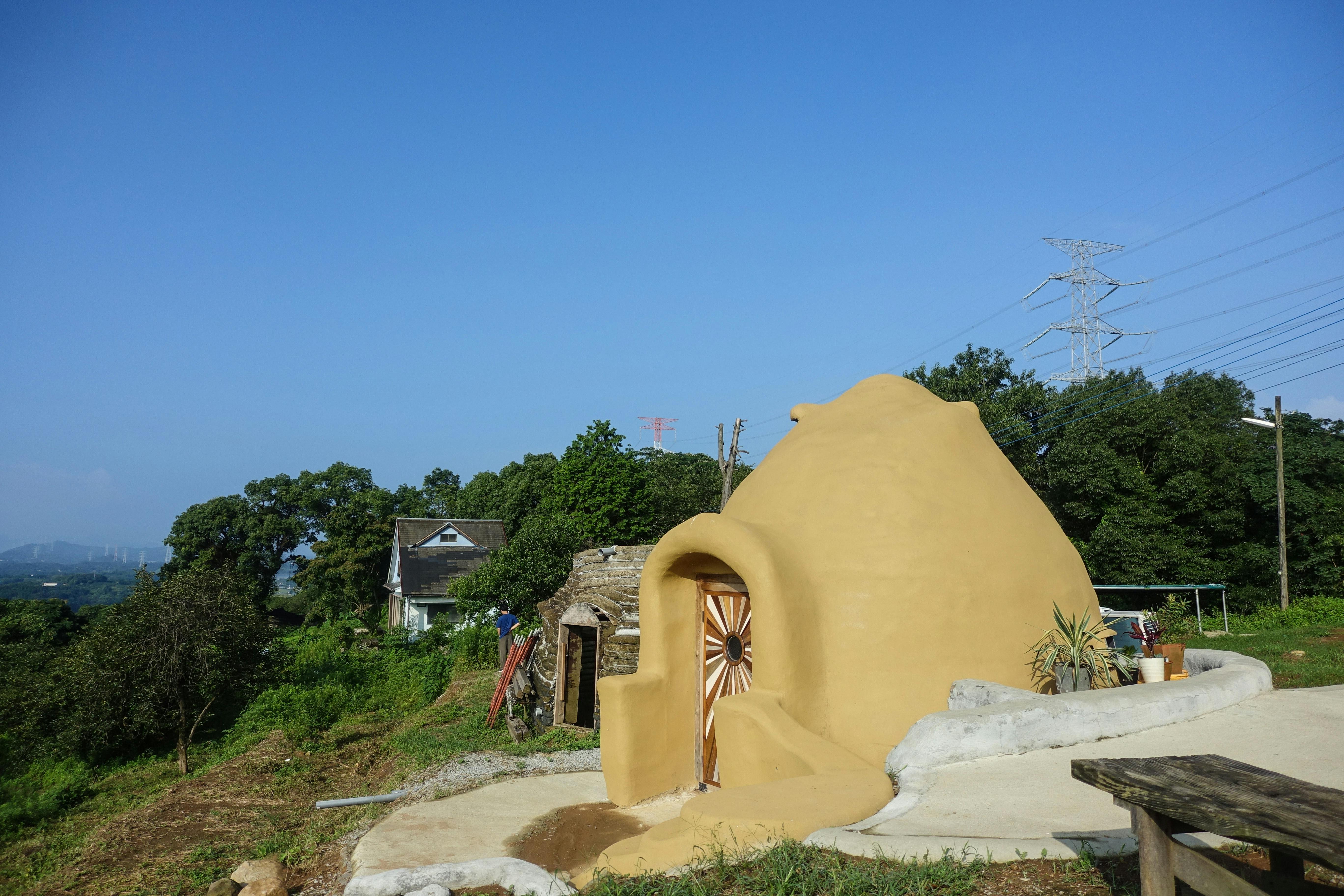 そして決め手はこちらの可愛らしいお家。アースバッグ工法という土でつくる建築手法でできた家です。