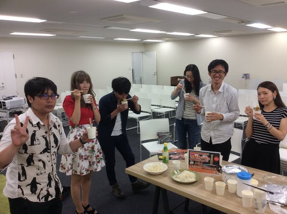 本日のお昼にCAMPFIRE本社にお邪魔して七福カレーめんの試食会を行いました!