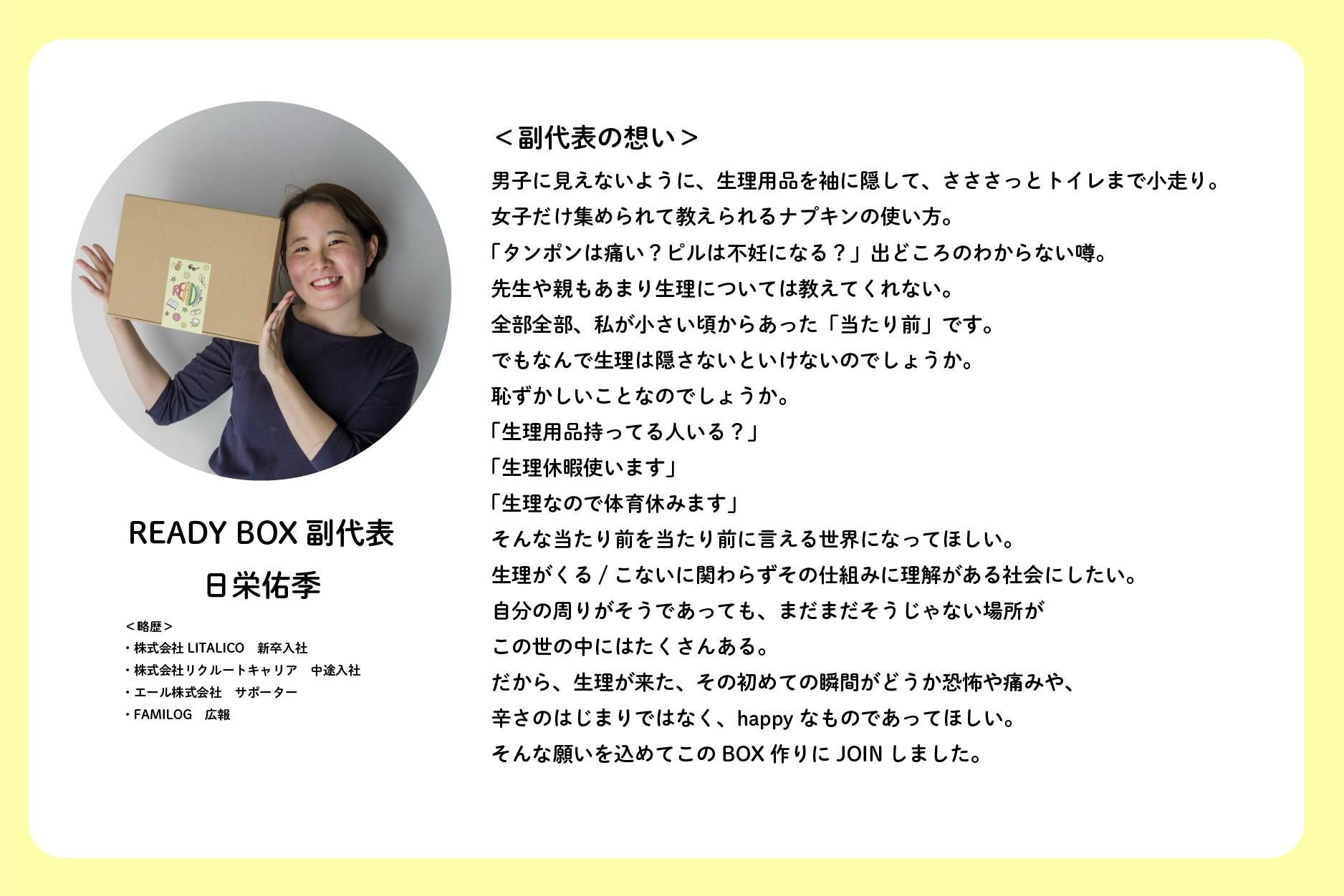 そして私はREADY BOXを通して、誰もが性の知識を学ぶ機会が得られる社会をつくっていきたいです。共感いただける方はご支援いただけますと幸いです。