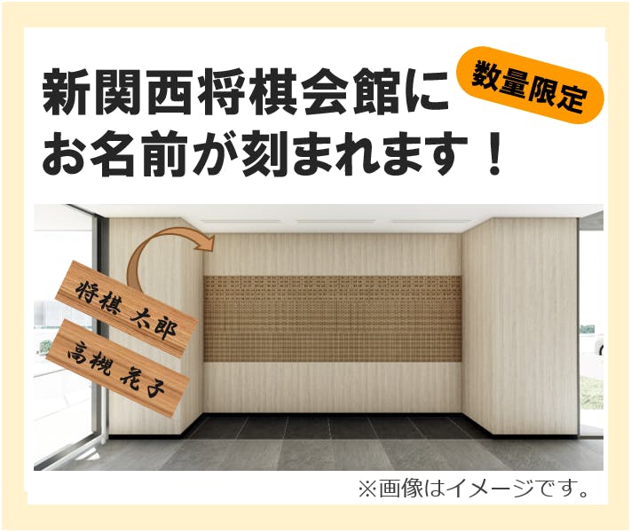 2024/12/18 12:00平素より「関西将棋会館建設プロジェクト」にご支援とご協力を賜り、厚く御礼申し上げます。新関西将棋会館に設置している寄附者銘板につきましては、令和6年12月3日のグランドオープンに設置を間に合わせるため、施工の都合により第4期クラウドファンディングを最終募集とし、令和6年3月31日に締め切らせていただきました。しかしながら、その後も寄附者銘板へのお申込みのお問い合わせが多数寄せられており、また設置スペースを捻出できたことから、この度、追加募集を実施することといたしました。数量限定での募集ですので、ご希望の方はぜひお早めにお申込みください。【詳細】新関西将棋会館 寄附者銘板新会館のエントランスに末永くお名前が刻まれ、新会館の歴史を見守り続けます!・ネームサイズ大(寄附額500,000円)※限定2名・ネームサイズ中(寄附額100,000円)※限定20名・ネームサイズ小(寄附額50,000円)※限定40名令和6年12月19日(木)12時から募集を開始いたします。皆さま、ぜひ最後の一押しを何卒よろしくお願い申し上げます。第5期関西将棋会館建設プロジェクトFINAL もっと見る一門対抗団体戦の観戦イベントの参加棋士の決定について
