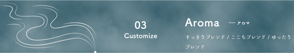 気分に合わせて調合したアロマを、ロウリュ時のアロマ水・休憩スペースでの香りに使用できます。