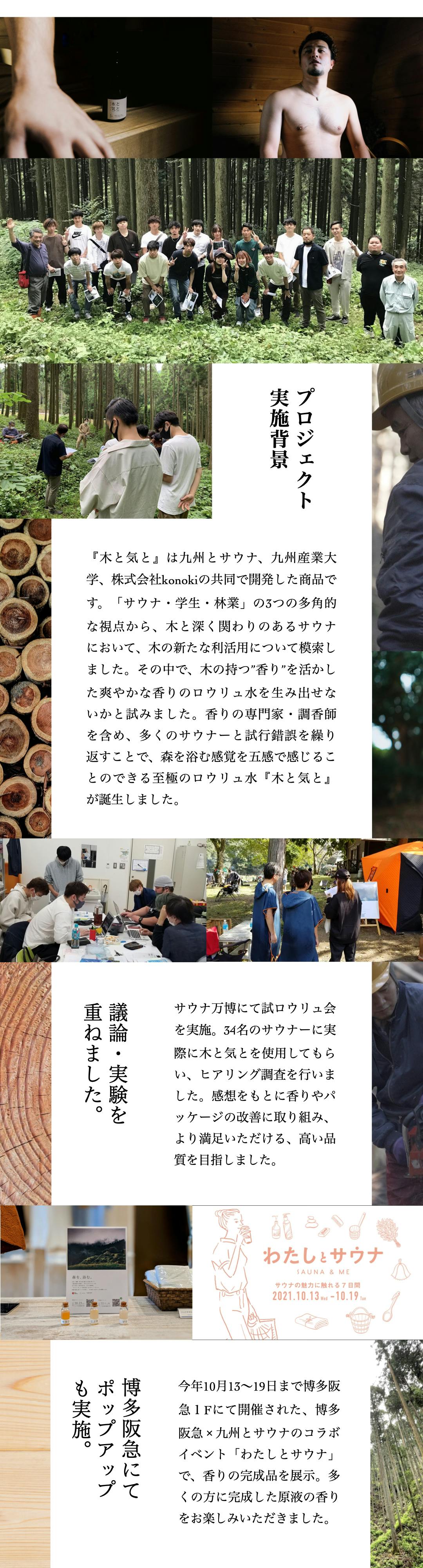 今回のプロジェクトは、森林課題やサスティナビリティと真剣に向き合い続ける株式会社konoki様。そして、学問的にソーシャルビジネスを探求する九産大木村ゼミ様の「森林課題をサウナを通して解決する」といった、ビジョンへ共感をし歩みを共に進めてきました。