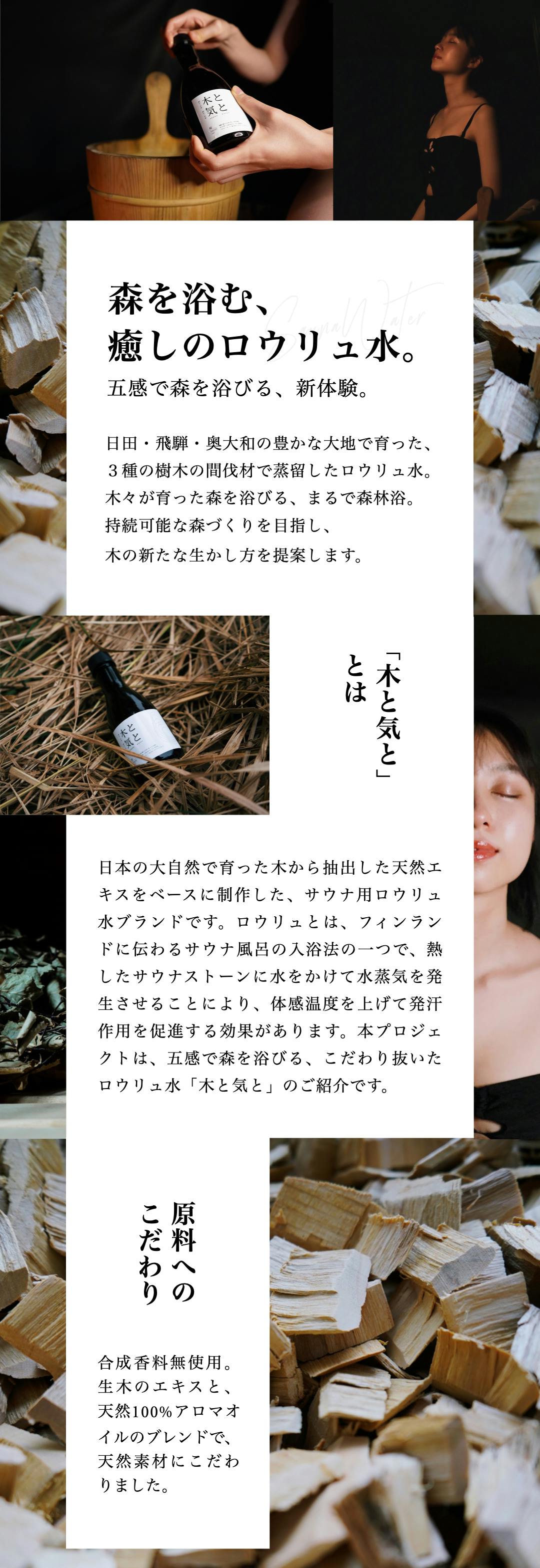 林業とサウナの融合である本プロジェクト「木と気と」を通して、自然と寄り添った時間を過ごすことで、あたたかな循環が生まれるキッカケとなることを願っています。