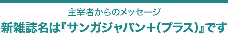 読者のみなさんが『サンガジャパン』を手に取ってくださったとき、『サンガジャパン』は初めて『サンガジャパン+』になるのだと思います。