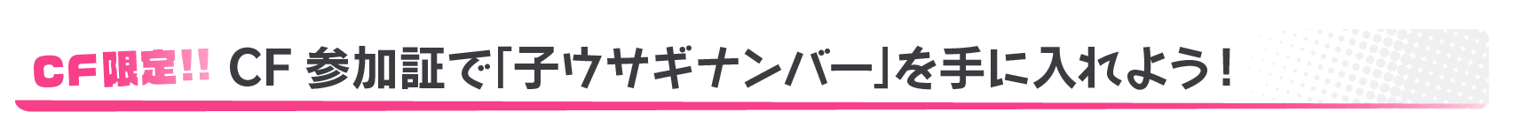 CFに参加したよいこの子ウサギちゃんがもらえる参加の証をプラスチックカード(ナンバー付き)でお送りします。ナンバーはエンボス加工で刻印します。