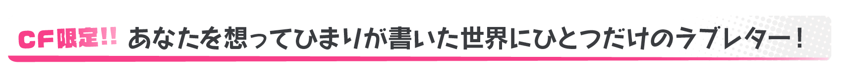 餅月ひまりから支援者ひとりひとりに直筆のラブレター(300文字程度を想定)をあなたのために選んだ便箋に入れてお送りします。