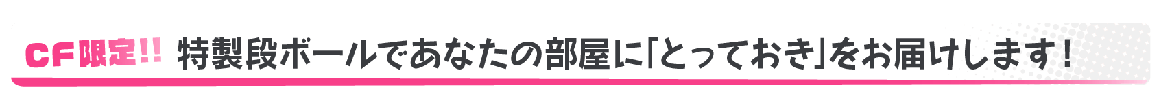 CFのためだけに限定製造される特製段ボールにリターングッズを入れて、あなたのご自宅に配送いたします。