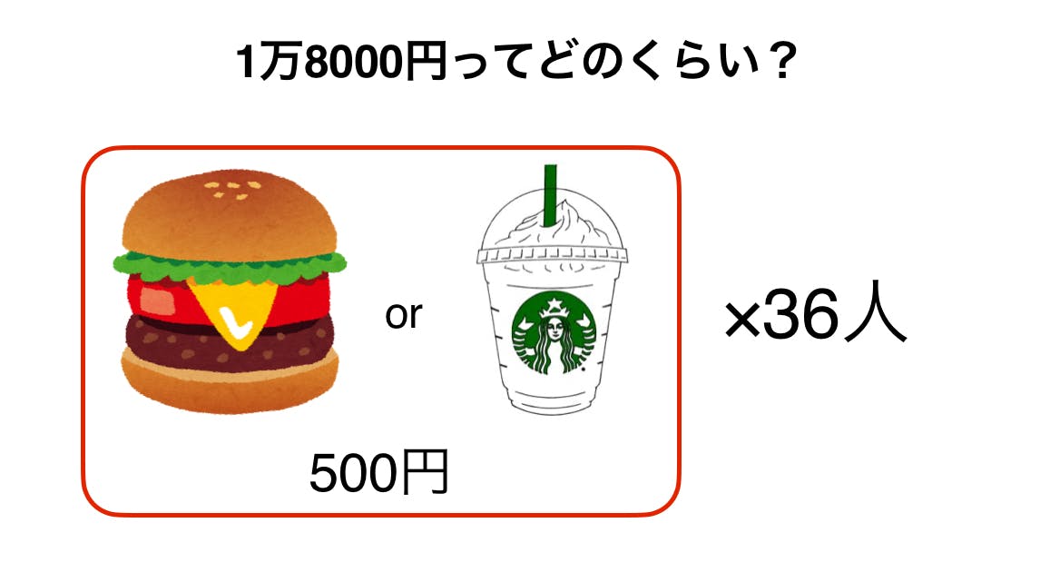 例えばマクドナルドの500円のセットかスターバックスコーヒーのフラペチーノ1杯分(=約500円)の代金を36人がシェアして下さると、1人の生徒が1年間学校に通うことができる。