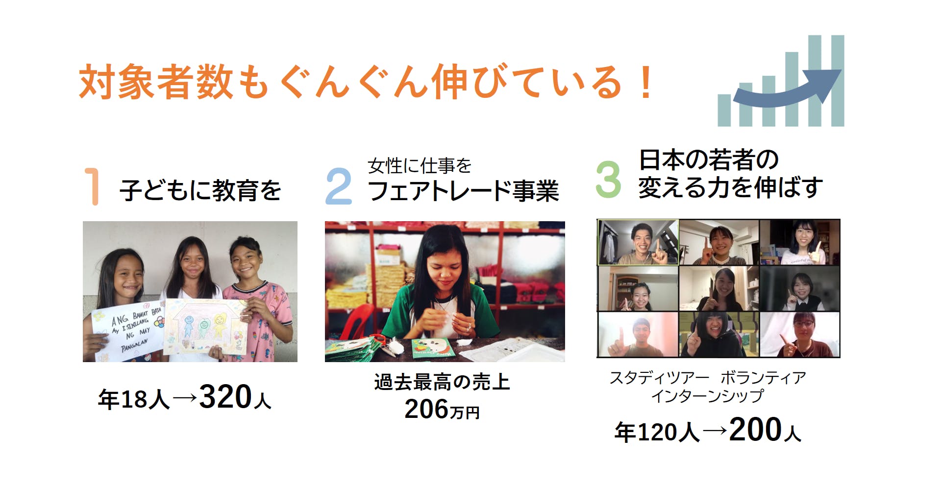 ここ数年は特に、フィリピンの子どもたちや女性、そして日本の若者の「自分の意見を持ち、他の人と対話し、課題解決のために行動する力」がぐんぐん伸びている実感があります。