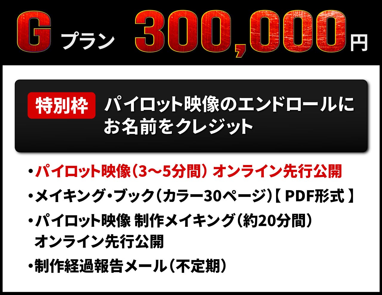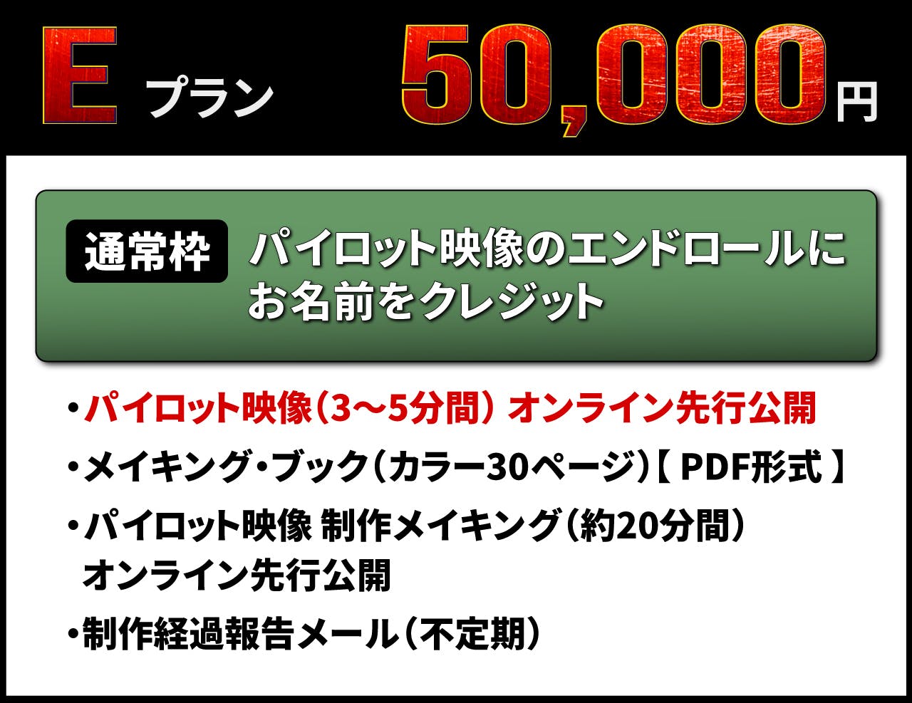 ・《 通常枠 》パイロット映像のエンドロールにお名前をクレジット