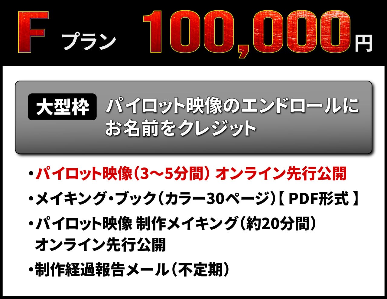 ・《 大型枠 》パイロット映像のエンドロールにお名前をクレジット