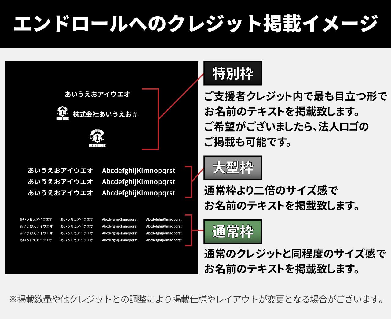 《 通常枠 》…通常のクレジットと同程度のサイズ感でお名前のテキストを掲載致します。