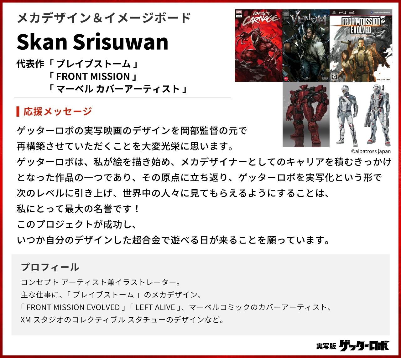 ゲッターロボは、私が絵を描き始め、メカデザイナーとしてのキャリアを積むきっかけとなった作品の一つであり、その原点に立ち返り、ゲッターロボを実写化という形で次のレベルに引き上げ、世界中の人々に見てもらえるようにすることは、私にとって最大の名誉です!