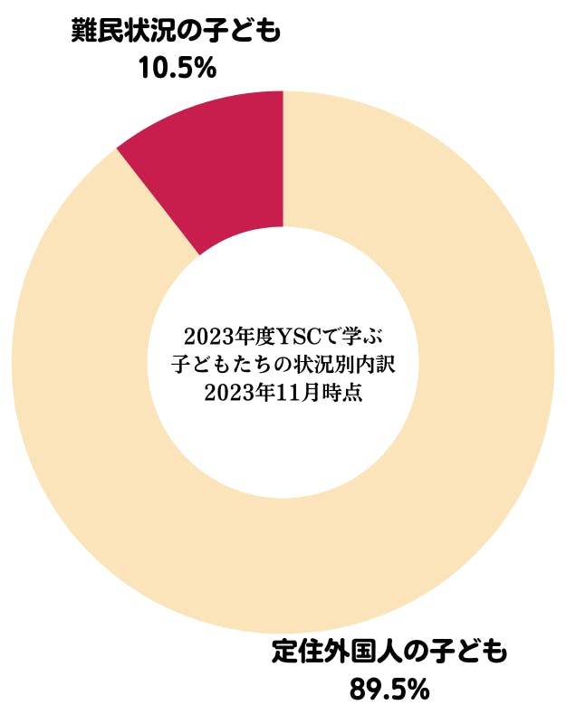 (図:2023年度、YSCで学ぶ子どもたちの内10.5%は難民状況に置かれた子どもたちです。)
