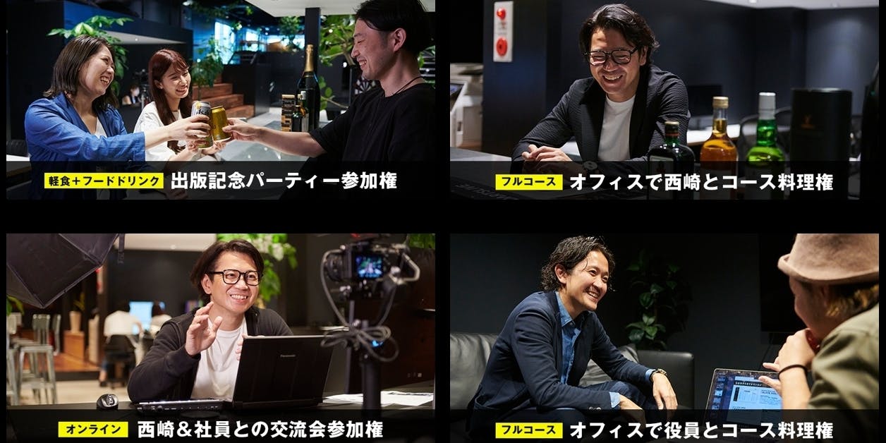 弊社社員によるXコンサルティングやYouTubeコンサルティング、代表西崎へのアポイント権利、1日社長代行権利まで多様なリターンをご用意しています。詳しくはぜひリターン一覧よりご確認ください。