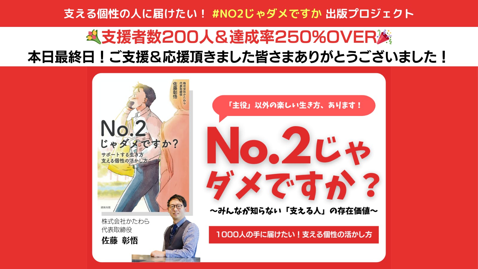 僕自身も今回の書籍プロジェクトを皮切りに、NO.2同士が繋がるプラットフォームやNO.2のノウハウをシェアするスクールなど今後様々な形で「支える」個性の価値を伝え、広げていく活動をしていきたいと考えております!