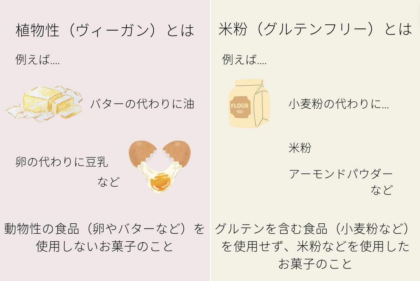 「植物性(ヴィーガン)・米粉(グルテンフリー)のお菓子」