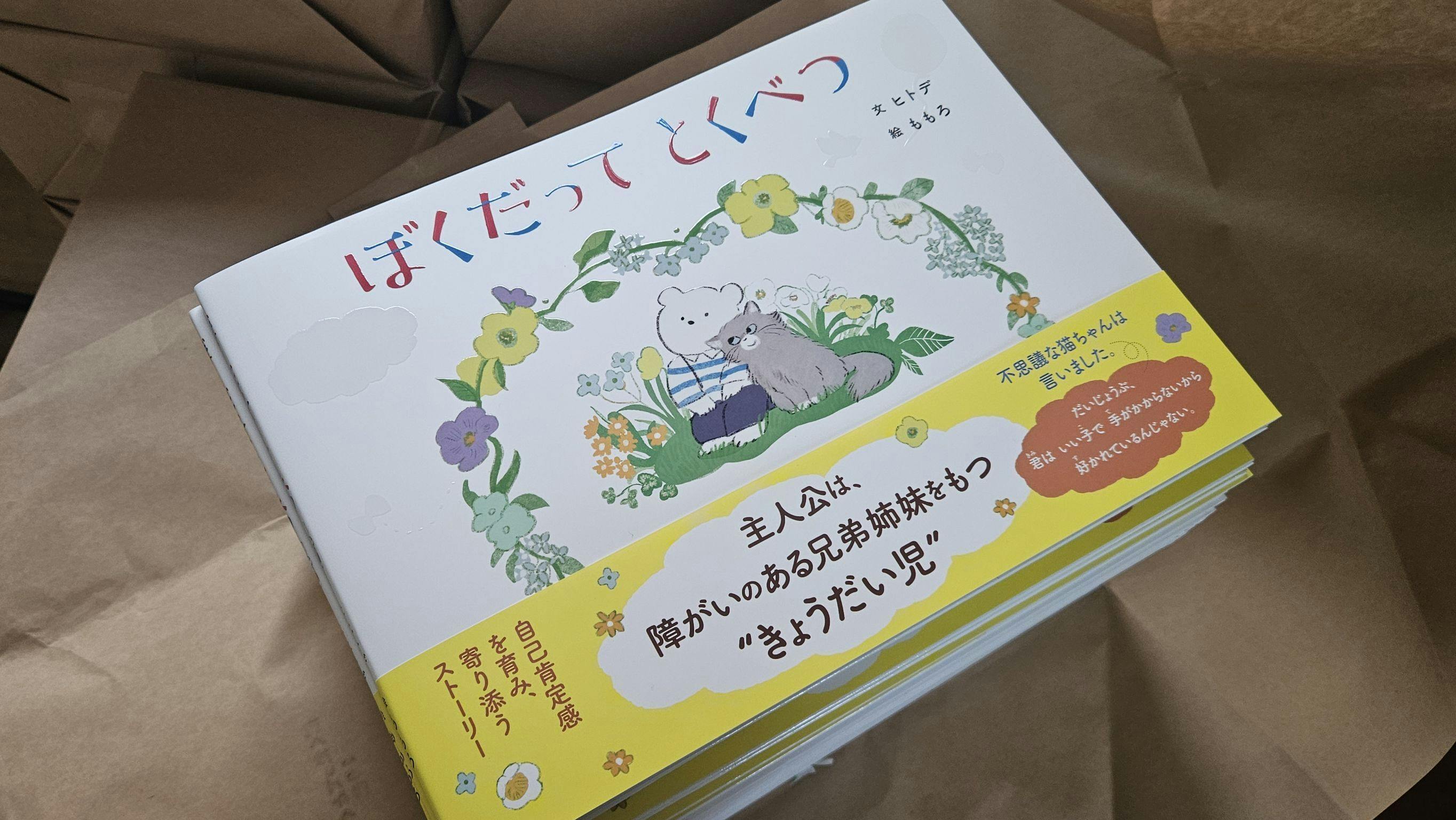 2024/11/22 15:02絵本「ぼくだってとくべつ」プロジェクトにご支援いただきました皆様、当初の予定よりも絵本の完成が大幅に遅れてしまい、大変申し訳ございません。昨日(11月20日)に原稿の最終調整が完了し、現在印刷所にて本印刷を進めております。それに伴い、絵本の完成は12月4日と決定いたしました。12月4日・5日の2日間で支援者の皆様へ絵本を発送いたします。また、12月6日以降、全国の書店およびオンラインストアにて「ぼくだってとくべつ」の販売が開始されます。https://www.amazon.co.jp/dp/B0DMNPNWJThttps://books.rakuten.co.jp/rb/18064548/上記の通り、すでにAmazonや楽天などの一部オンライン書店にて予約受付が開始されておりますが、ご支援いただいた皆様にはいち早くお届けできるよう努めてまいります。余談ですが、こちらが最終調整時のサンプル写真です。こだわりは随所にあるのですが、とくに珍しいものですとカバーの一部に「UV厚盛印刷」という加工を施しました。写真だとわかりにくいのですが、加工した部分はツヤが出て、ぷっくりと盛り上がっております。身体に優しい樹脂インクを使った、触って楽しむ、紙の本ならではの工夫です。しかしながら、子どもが触って楽しめるほどの量・厚みで加工をすると、通常の書籍のように機械でまとめて作ることができなくなってしまい……。職人が1枚1枚手作業で断裁・製本することとなり、印刷所・製本所の方々にも非常にご協力いただいている状況です。ご迷惑・ご心配をおかけし大変申し訳ございませんが、皆様のお力添えのおかげで上記写真の状態からも出来得る最高の状態までこだわり、心を込めて製作することができました。到着をどうぞお楽しみにお待ちくださいませ。 もっと見る