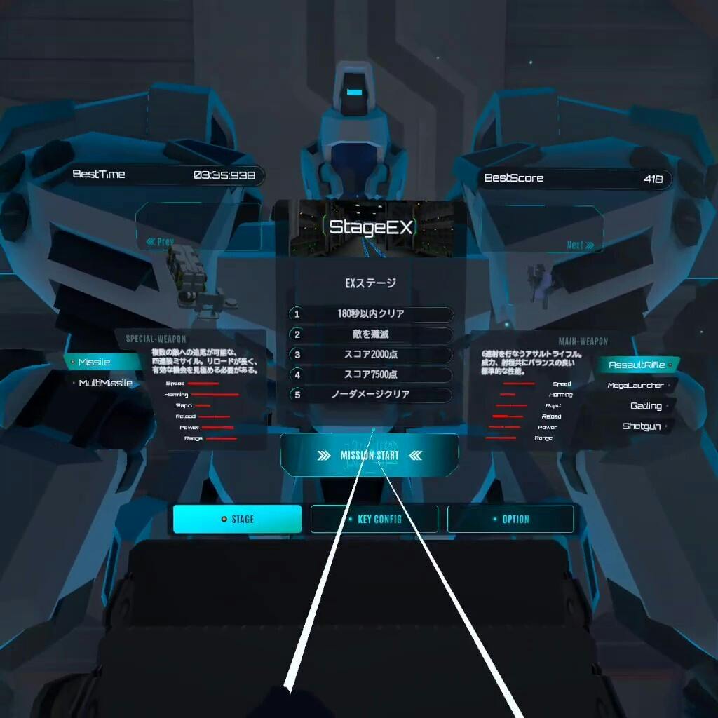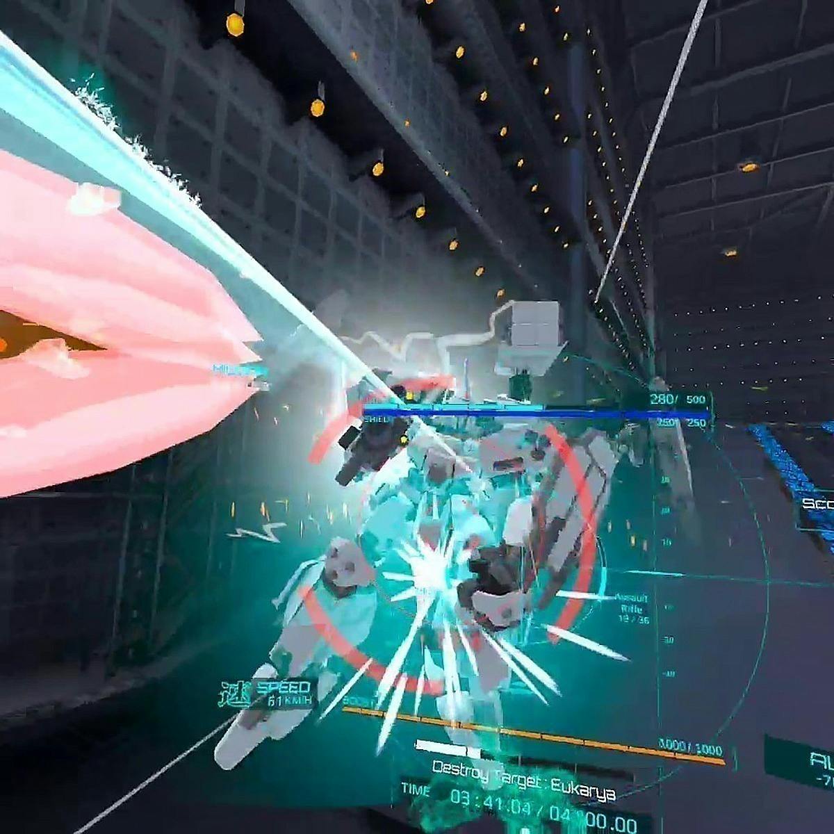 ストーリーとバトルにわかれた没入型VRロボットゲームです。