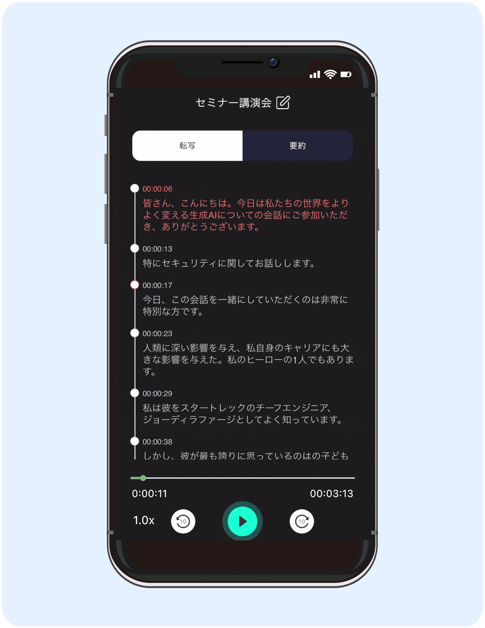 A:記録が許可されている限り、アプリを通じて文字起こししたり要約したりすることができます。