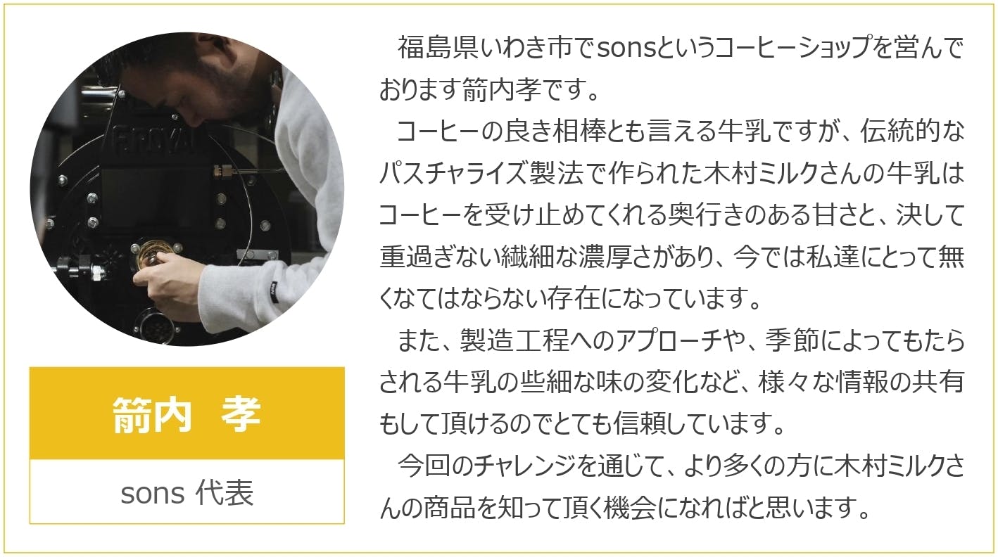 このプロジェクトをご覧いただきまして、ありがとうございます。いわき市平にある牛乳メーカー「木村ミルクプラント株式会社」の曽根原友美です。