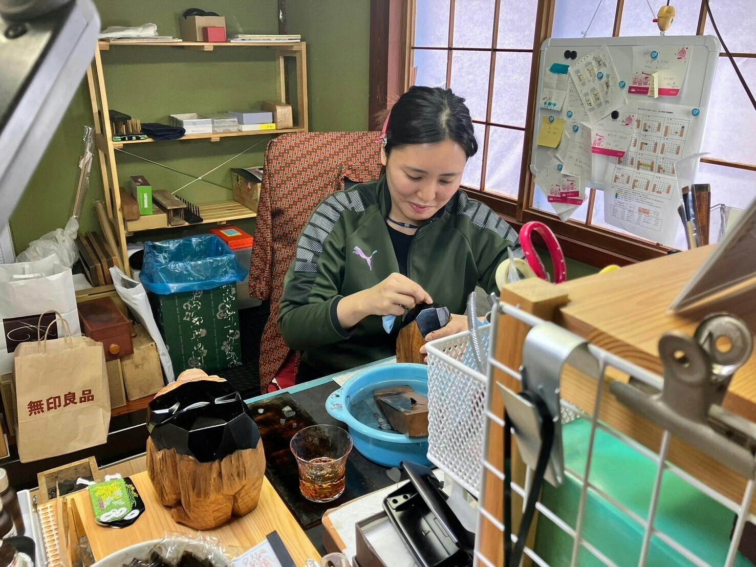 その中でも、工房をすぐに再開させ、作業を開始している若手の蒔絵師である大森晴香さんと私は今年の4月に出会いました。大森さんは、岸田元首相からバイデン大統領へ贈答品としてお贈りした輪島塗の漆器の名前も書いており、未来の輪島塗を繋いでいく貴重な方です。