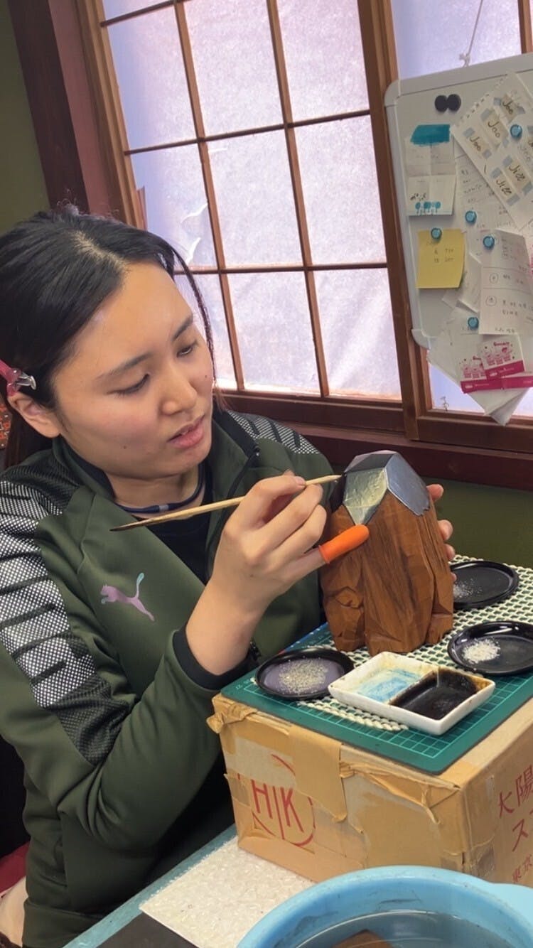 そんな時震災後に下沢さんから、北海道の木彫りのクマに漆で装飾して作品を作らないかと連絡をいただきました。震災以降沈みがちだった気持ちが制作するにつれて元気になって前向きになれました。このコラボは自分自身にとっても新しい挑戦、成長につながっていくと確信しています。制作はとても、大変苦しい部分もありますが楽しんでワクワクしながら制作しています、どうぞ楽しみにお待ち下さい!」