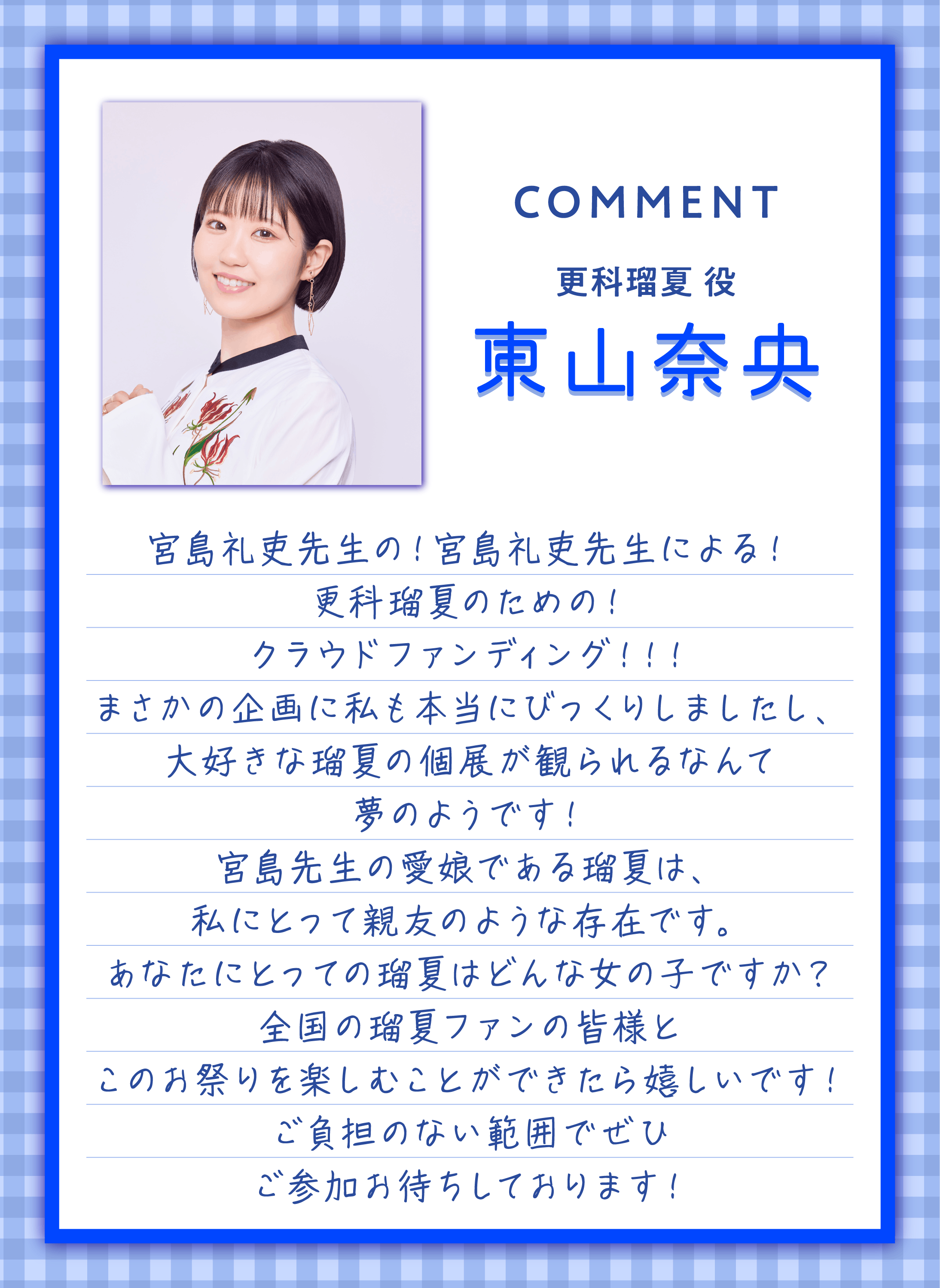 更科瑠夏役 東山奈央さんより