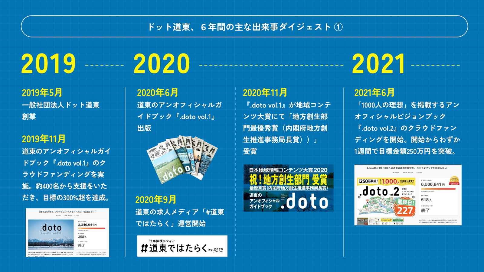 ・ 計発行部数1万部・日本地域コンテンツ大賞にて「地方創生部門(内閣府地方創生推進事務局長賞)最優秀賞」受賞・メディア掲載多数、2020年発行のアンオフィシャルガイドブック「.doto vol.1」の増補改定版
