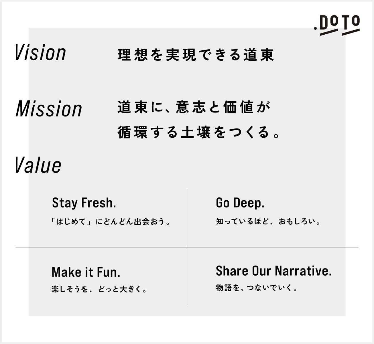 わたしたちはこれから、この「意志と価値」をさらに循環させていくという思いをMVVに込めました。そしてそれをさらに加速させるための第一歩として、今回「DOTO FUN」プロジェクトを立ち上げました。