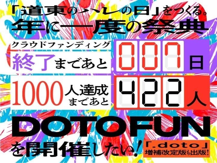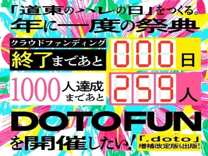 ・ 本クラウドファンディングにて「DOTO-FUN」入場券、「.doto EXTRA」を含まれるリターンをご支援いただいた方には、「.doto EXTRA」を「DOTO FUN」会場にて先行でお渡しします