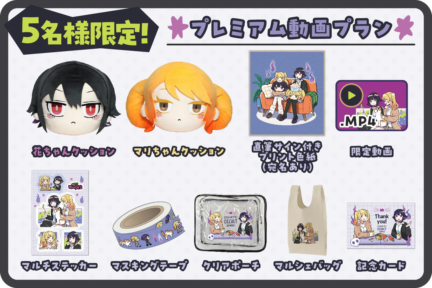 花ちゃんマリちゃんのクッションとグッズが揃うプランです!