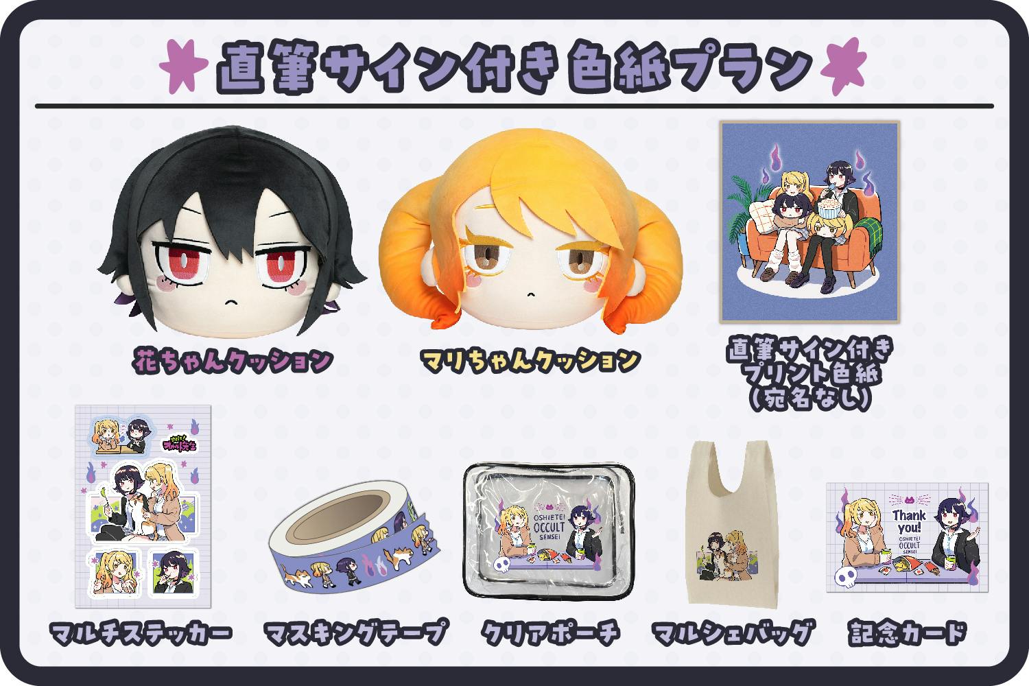 直筆サイン付きプリント色紙とクッション・グッズも手に入る豪華なラインナップです♪