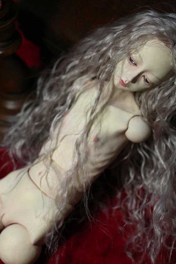 最初は、子供の頃から持ち続けている「少女」への憧れ、東京のギャラリーで見た人形の衝撃、「それまでの自分ではない何者か」になりたいという願望から、技法書等を参考に自分の為の人形製作を始めました。