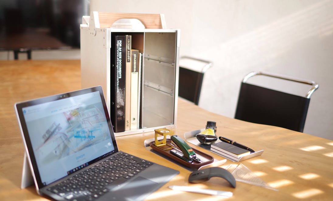「オカモッティ」は、仕事以外でも大活躍。文房具や書類だけでなく、趣味のグッズの保管庫としてもピッタリです。アルミ製のクールな外観で、そのままディスプレイしてもカッコイイ。コレクションがフロントスライドドアから出てくる様は、まるで秘密基地です。