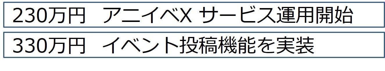 ▶第2目標金額3,300,000円「アニイベXへユーザーによるイベント投稿機能を実装」
