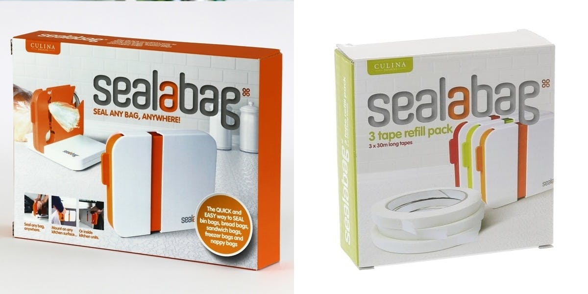 シーラバッグは、袋をテープで簡単に2秒で止めることができる、イギリスでデザインされたお洒落なプロダクトです。