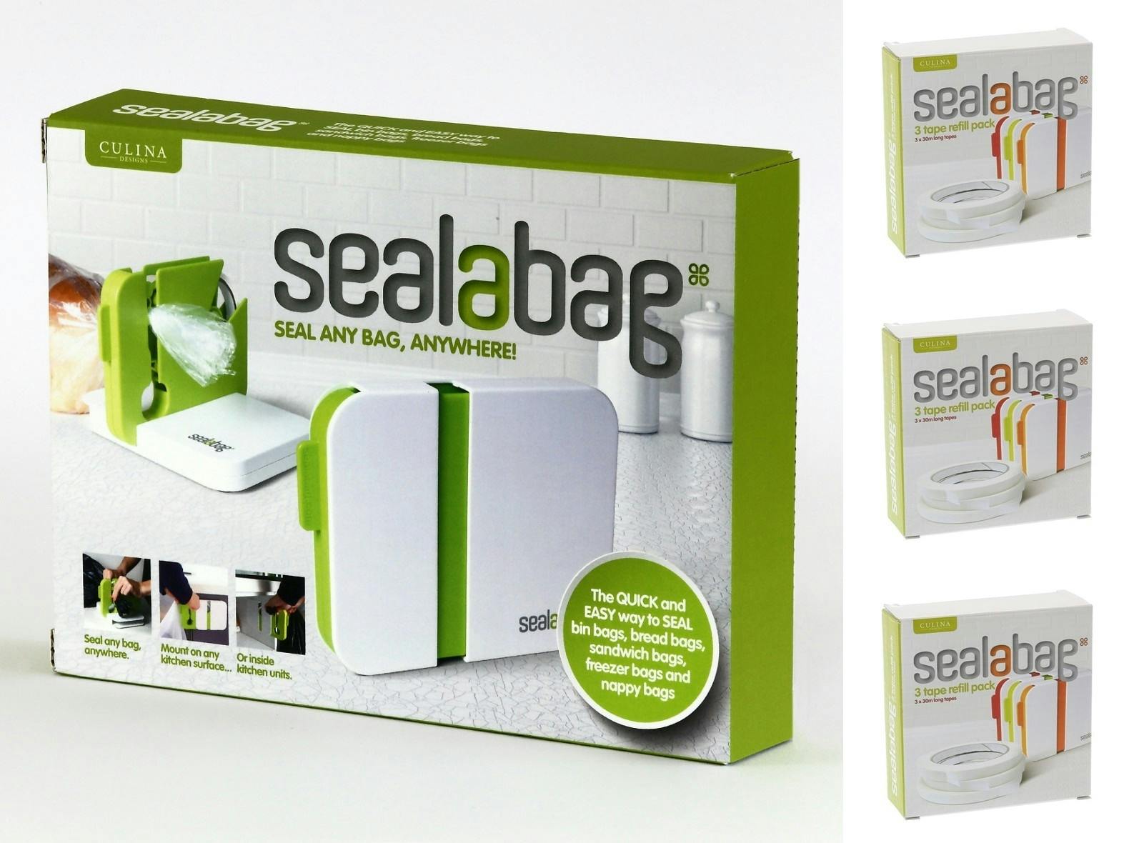 通常の25%引き シーラバッグ(グリーン) 1個+替えテープ(3個入り)×3箱