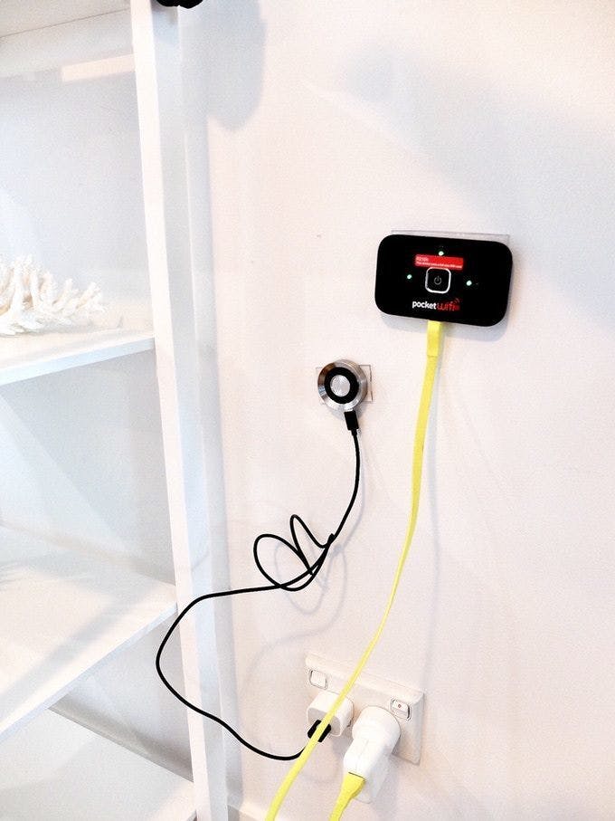 ごちゃごちゃしがちなケーブル関係も壁に貼ってすっきり収納