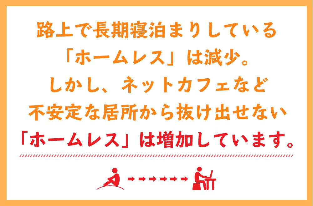広い意味での「ホームレス状態」の人の増加。